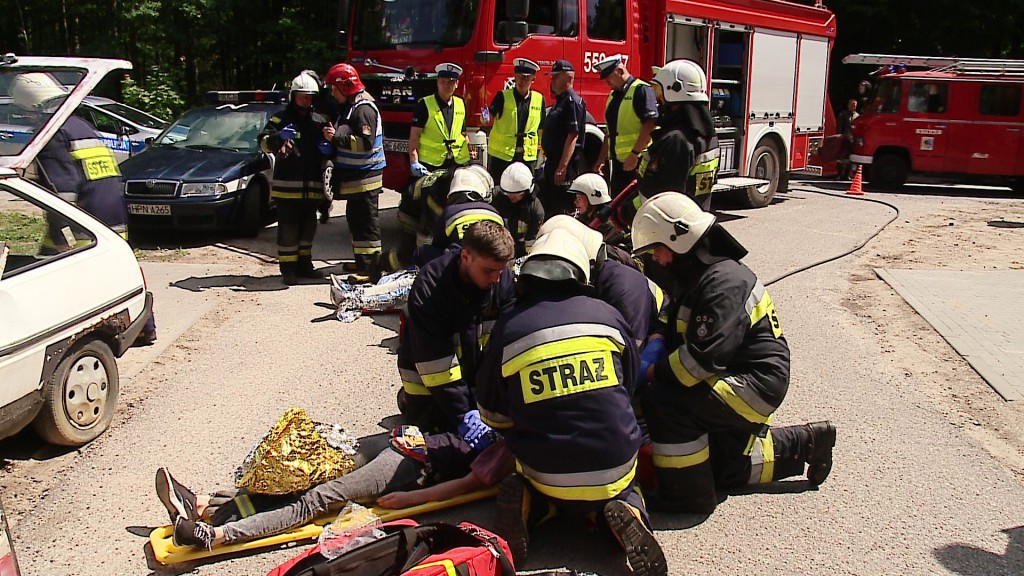 W Kębłowie doszło do groźnego wypadku, z niewiadomych przyczyn samochód wypadł z drogi. Po przybyciu na miejsce służb bezpieczeństwa okazało się, że w środku znajdują się uchodźcy - to scenariusz ćwiczeń, które każdego roku przeprowadzane są na terenie powiatu wejherowskiego.