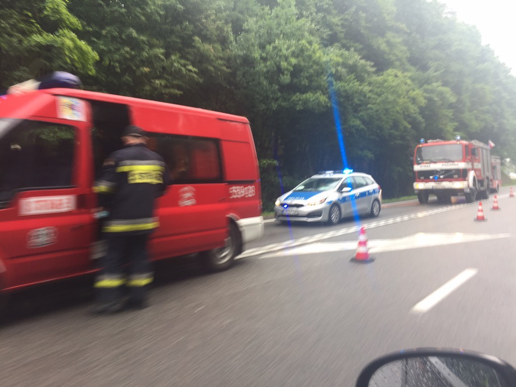 Na miejscu była straż pożarna i policja. Były utrudnienia w ruchu i w obie strony tworzyły się korki.