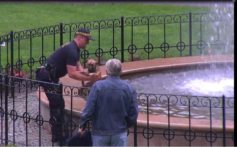Wejherowscy strażnicy miejscy wyciągnęli z fontanny psa. Zwierzę wskoczyło do wody i nie mogło z niej wyjść. Do zdarzenia doszło w parku miejskim.