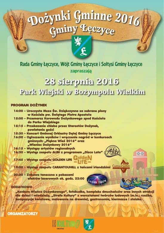 W tym roku obchodom gminnych dożynek będą towarzyszyć liczne koncerty i zabawy. Szczegóły można znaleźć w naszym kalendarium:
