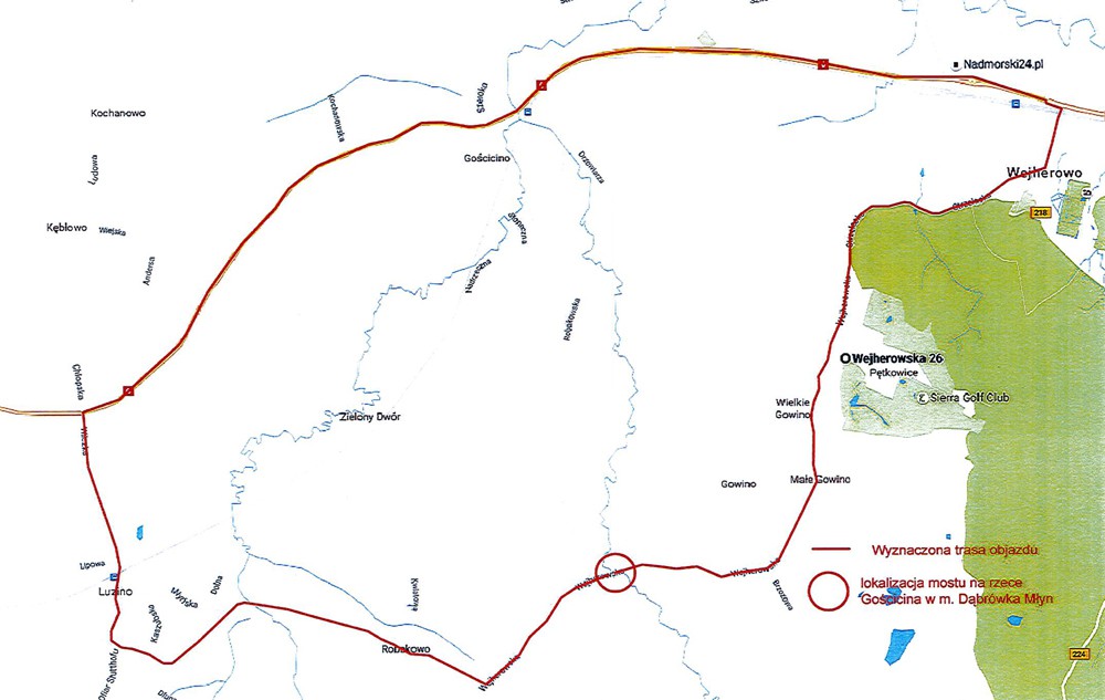 Całkowite zamknięcie drogi obowiązuje w dniach od 15 września do 30 listopada 2016 roku. Poniżej znajduje się mapa z wyznaczoną trasą objazdu na czas wykonywanych prac.