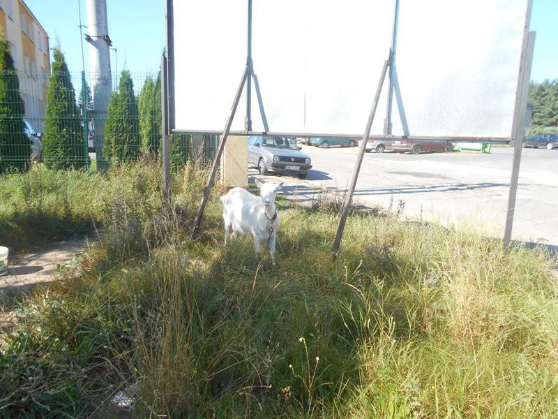 W czwartek (15 września) około godziny 12:30 w wejherowskiej straży miejskiej rozdzwoniły się telefony od mieszkańców, którzy informowali, że na granicy miasta i gminy Wejherowo od kilku godzin stoi na słońcu, przywiązana łańcuchem do reklamy drogowej, koza.