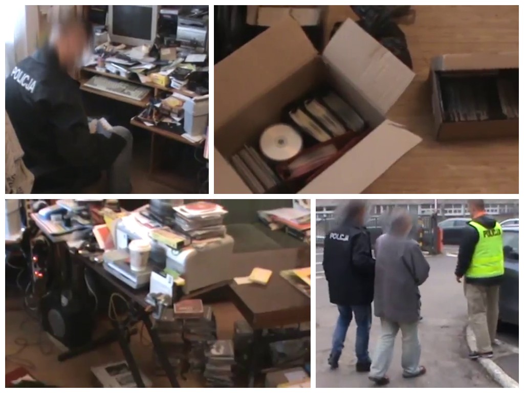 Podczas przeszukania mieszkania podejrzanego mundurowi znaleźli m.in. dyski twarde oraz płyty, które poukrywane były w kartonach po słodyczach oraz w okładkach po książkach.