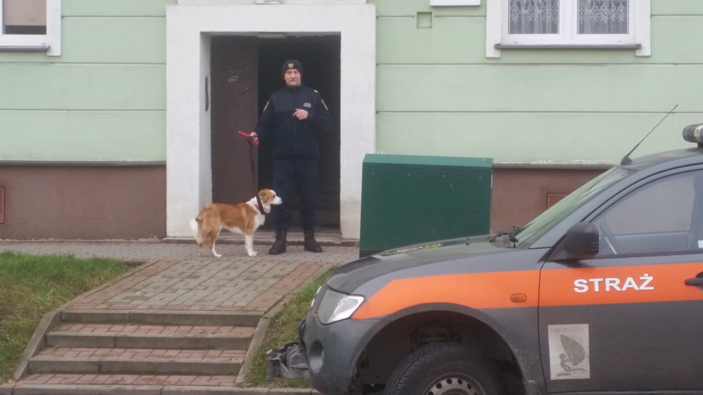 Gdy mundurowi przybyli na miejsce okazało się, że pies rzeczywiście skamle i szczeka, a pomimo pukania i próśb nikt nie otwierał drzwi do mieszkania. Ponadto na klatce wyczuwalny był charakterystyczny fetor.