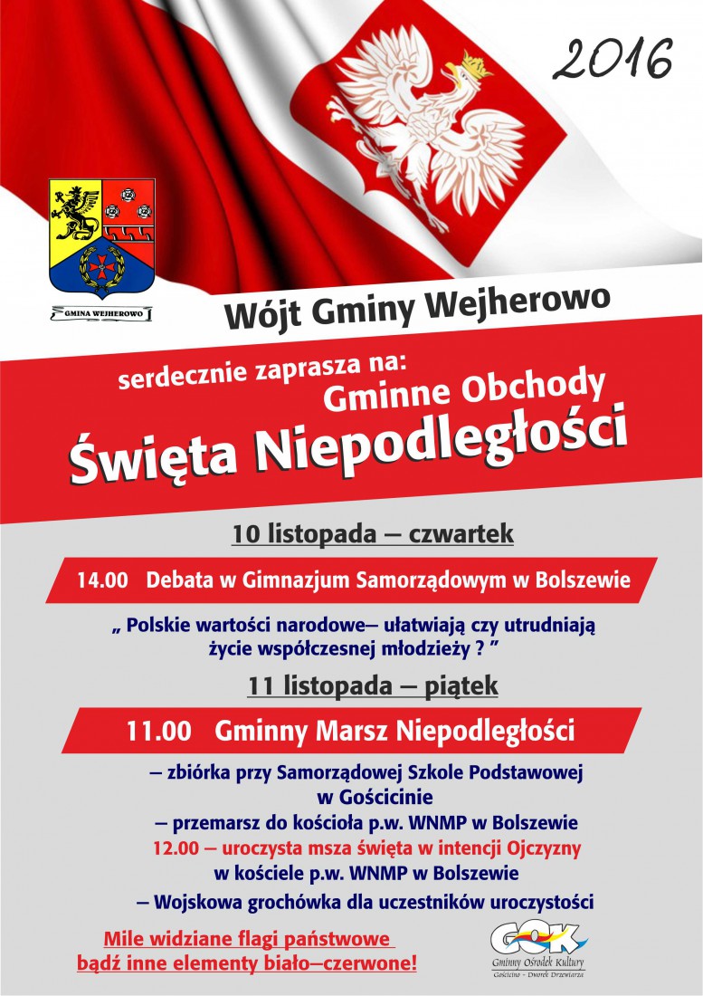 W gminie Wejherowo odbędzie się Marsz Niepodległości.