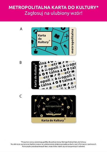 Głosowanie na nowy wzór karty trwa do 30 listopada 2016 roku. Wygra jeden z trzech proponowanych projektów, który uzyska największą liczbę głosów. Więcej szczegółowych informacji można znaleźć TUTAJ. Proponowane wzory Metropolitalnej Karty do Kultury można zobaczyć na poniższym zdjęciu.