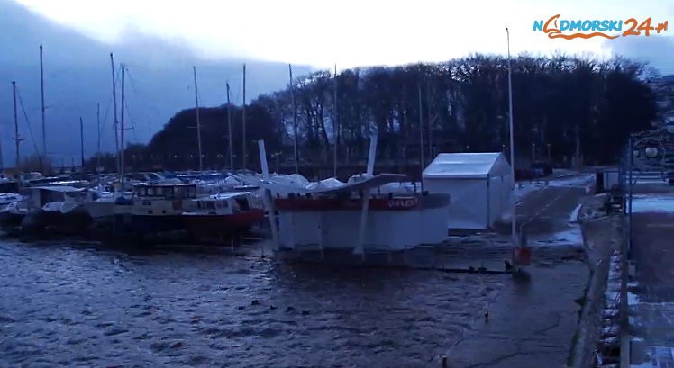 Sztorm w puckim porcie rybackim w nocy z 4/5 stycznia: