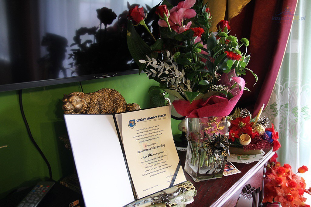 Solenizantka urodziła się w okolicach Borcza, później przeprowadziła do Gdyni, gdzie mieszkała przez blisko 60 lat. Natomiast 8 lat temu, wraz z synem i jego żoną, przeniosła się na puckie ziemie.