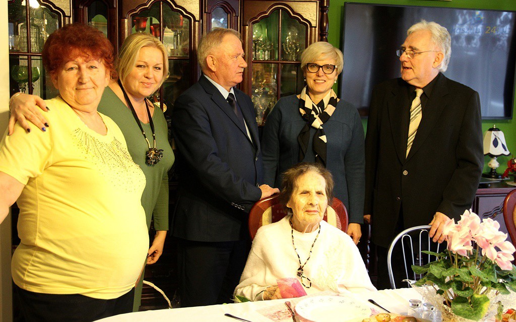 Pani Marta jest najstarszą mieszkanką gminy Puck, dlatego urodzinową wizytę złożyli jej między innymi lokalni włodarze. Samorządowcy wręczyli jubilatce pisemne życzenia, bukiety kwiatów oraz upominki.