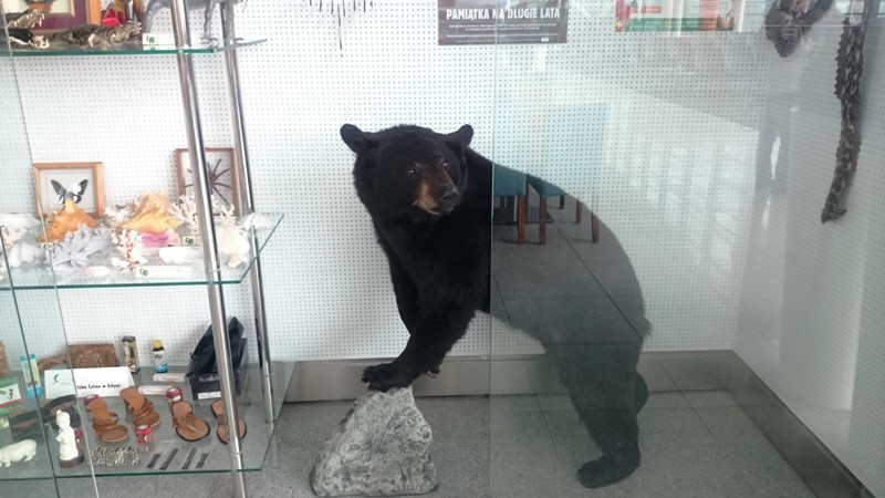 Wypchany miś baribal, którego celnicy skonfiskowali w 2015 roku w gdyńskim porcie, jest już na lotnisku w Gdańsku. Niedźwiedź nigdzie nie leci, będzie pełnił funkcję edukacyjną i pokazywał podróżnym, że nie wszystko można przewieźć przez granicę.
