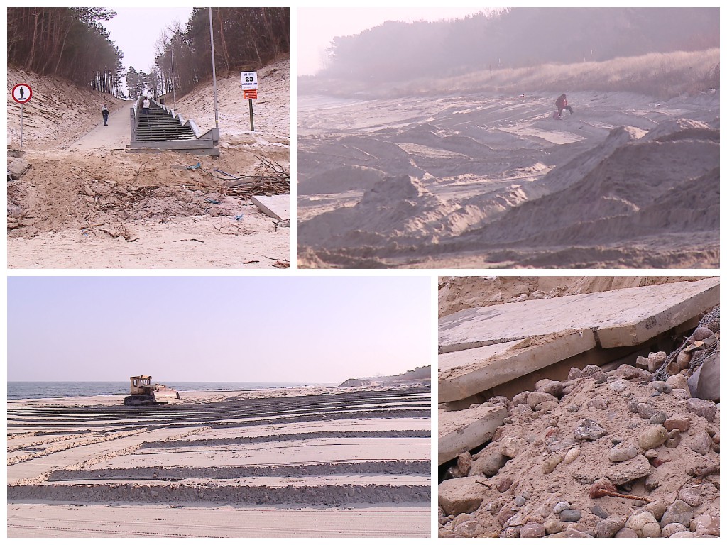 Woda zabrała również 800-metrowy odcinek plaży u nasady Półwyspu Helskiego oraz część tamtejszej wydmy. Dzięki wcześniej podpisanej umowie, Urząd Morski w Gdyni zlecił już odbudowę brzegu w rejonie helskiego fokarium. Zwożony piasek posłuży również m.in. do zabezpieczenia kładek.