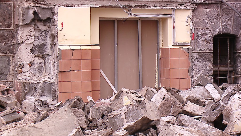 Po dawnym łączniku został tylko gruz. Szpital potrzebował 40 lat, by zebrać pieniądze potrzebne do wybudowania windy.