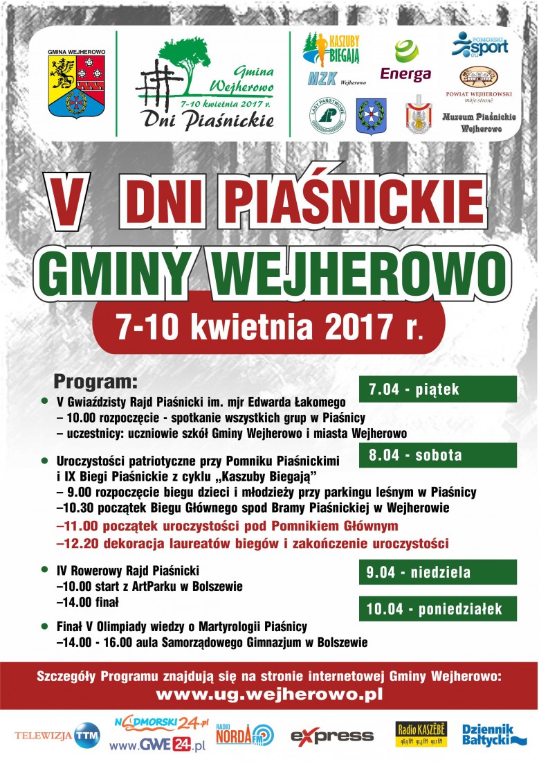 Od 7 do 10 kwietnia odbędą się V Dni Piaśnickie Gminy Wejherowo. Pierwszego dnia z Piaśnicy wyruszy rajd imienia majora Edwarda Łakomego. Z kolei w sobotę 8 kwietnia przy pomniku piaśnickim będą miały miejsce coroczne uroczystości patriotyczne. Tego samego dnia sportowcy pobiegną w patriotycznym wyścigu, który jest częścią cyklu „Kaszuby biegają”. Następnego dnia, w niedzielę wyruszy rajd rowerowy ku pamięci pomordowanych, a w poniedziałek odbędzie się olimpiada, w której młodzież sprawdzi swoją wiedzę historyczną.