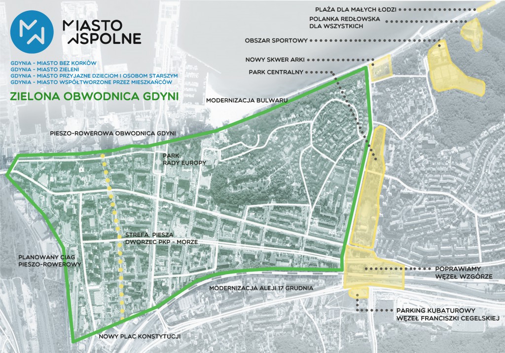 Tymczasem Stowarzyszenie Miasto Wspólne zaproponowało, aby połączyć kilka miejskich terenów rekreacyjnych i sportowych, w jeden zielony szlak o długości około 7 kilometrów, który będzie okalał śródmieście Gdyni.