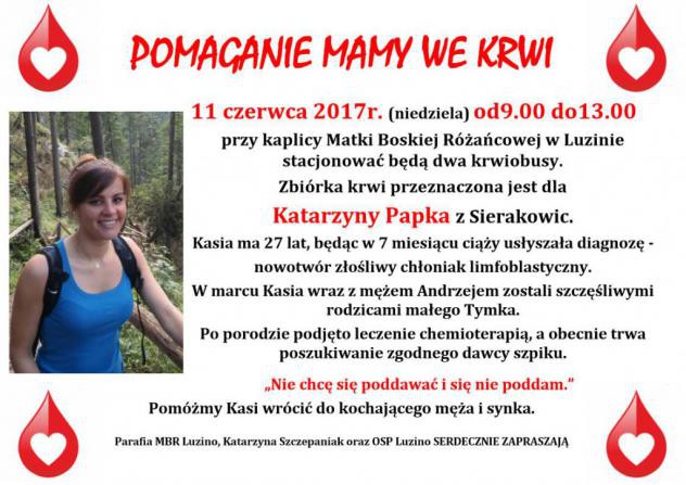 Po wyniszczającej organizm chemioterapii szanse na powrót Kasi do zdrowia zwiększy przeszczep szpiku kostnego. Potrzebna jest również krew.