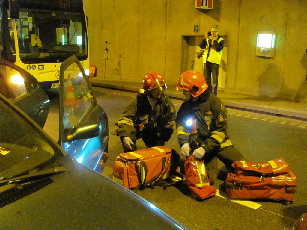 Ćwiczenia były przygotowane na dużą skalę. Brało w nich udział około 40 pozorantów, większość z nich musiała zostać wyniesiona przez ratowników na noszach. Ćwiczono też uwalnianie poszkodowanych zakleszczonych w samochodzie. Ofiary symulowanego wypadku przenoszono drogami ewakuacyjnymi do drugiej nitki tunelu, gdzie rannymi zajmowali się lekarze.