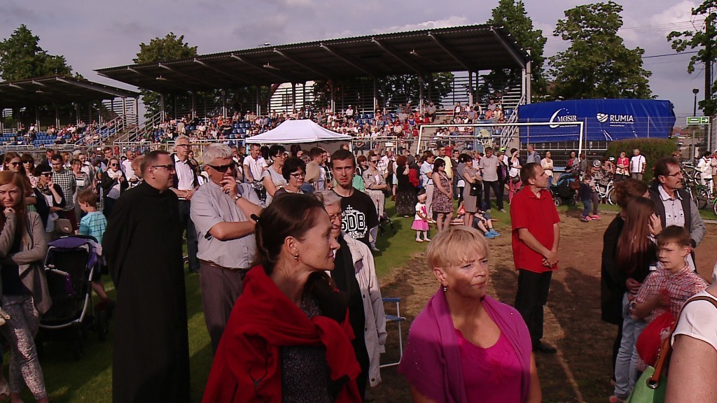 Koncert „Bogu Chwała” na stadionie miejskim w Rumi stał się swoistym przedłużeniem świętowania i – jak brzmi sam tytuł wydarzenia – chwalenia Boga. Muzycy, wokaliści i licznie zgromadzeni na murawie boiska mieszkańcy miasta pokazali, jak można modlić się radośnie, ze śpiewem na ustach.