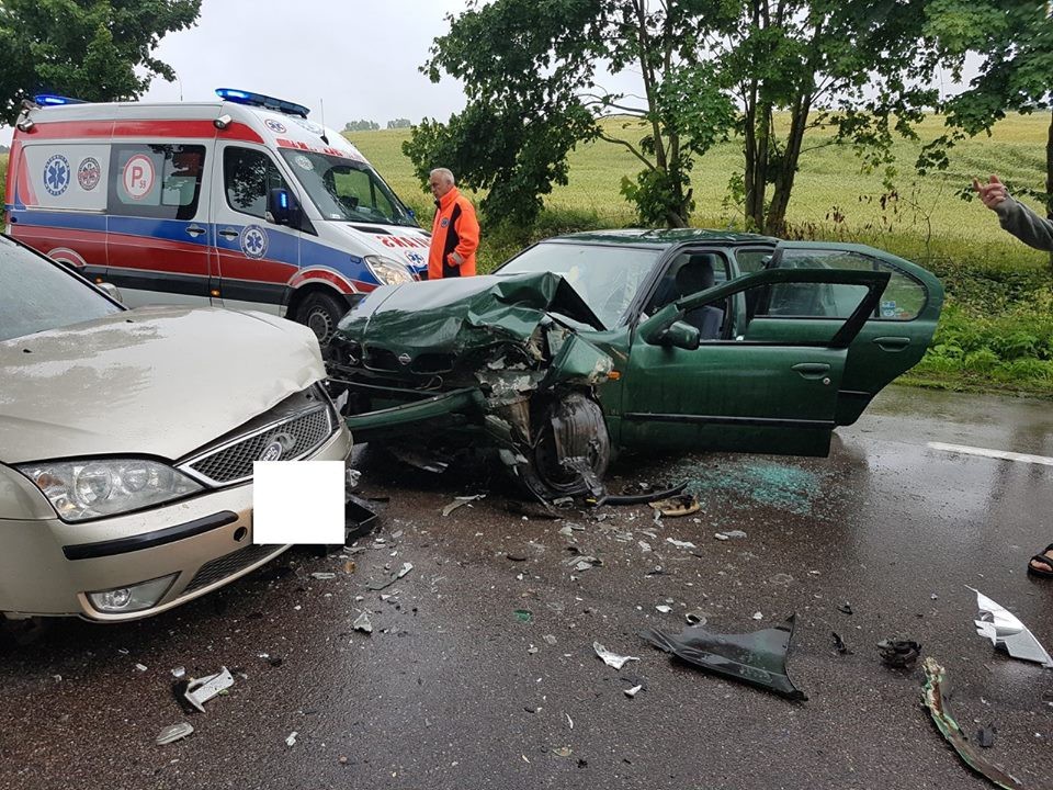 Na trasie Łętowo – Karczemka (powiat wejherowski) czołowo zderzyły się dwa samochody osobowe. Do zdarzenia doszło na łuku drogi.