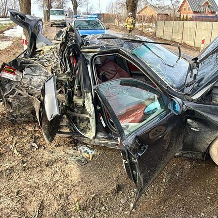 – Podczas oczekiwania na przyjazd innych służb, policjant zauważył, że spod maski rozbitego samochodu wydobywa się dym, dlatego też poprosił inne osoby o użycie gaśnic samochodowych, by nie dopuścić do pożaru – relacjonują policjanci.