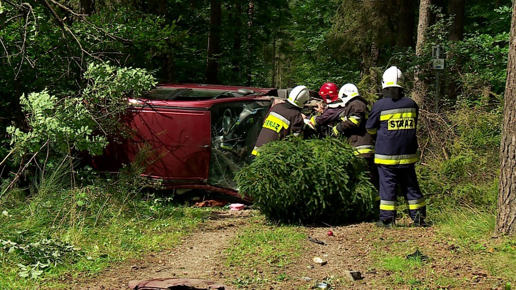 Dwa zastępy straży pożarnej zostały wysłane do Piaśnicy, gdzie doszło do dachowania samochodu. Interweniowała również karetka pogotowia.