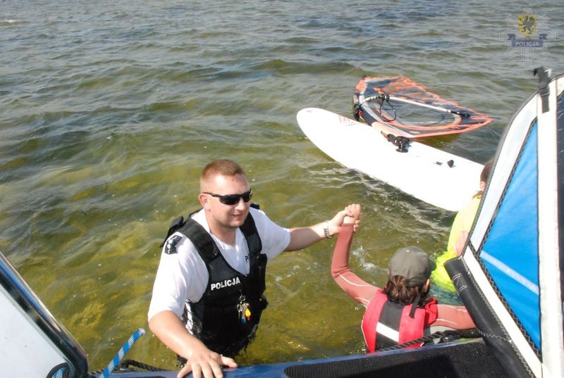 Wówczas mundurowi rozpoczęli akcję ratunkową. Wodniacy podpłynęli do dryfujących windsurfingowców, rzucili linę instruktorce, a następnie wyciągnęli z wody 12-latkę oraz sprzęt wodny.