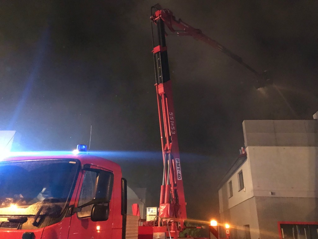 Na miejscu trwa akcja gaśnicza i zabezpieczenie terenu. Już teraz wiadomo, że straty materialne mogą być znaczne. Na razie nie ustalono, jakie były przyczyny wybuchu pożaru.