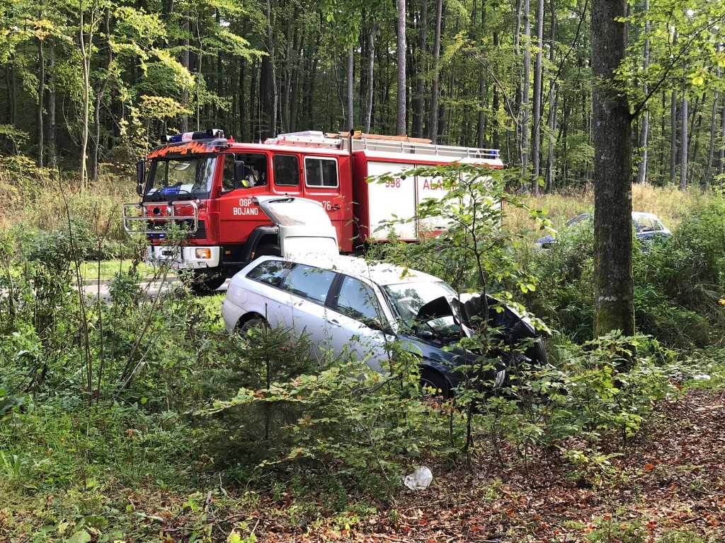 Kierujący alfą romeo, jadąc z Rumi w kierunku Rogulewa, najprawdopodobniej nie dostosował prędkości do panujących warunków, w wyniku czego stracił panowanie nad pojazdem, który ten wypadł z łuku drogi. Kierowca odniósł liczne rany cięte oraz stłuczenia. W chwili przyjazdu na miejsce służb 19-latek był przytomny.