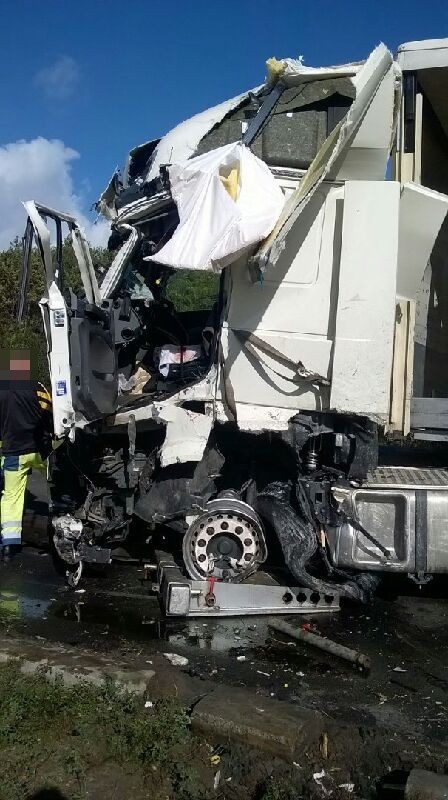 Do groźnie wyglądającego zdarzenia drogowego doszło we wtorek (3 października) w Kartoszynie. Przed godziną 11:00 zderzyły się dwa samochody ciężarowe.