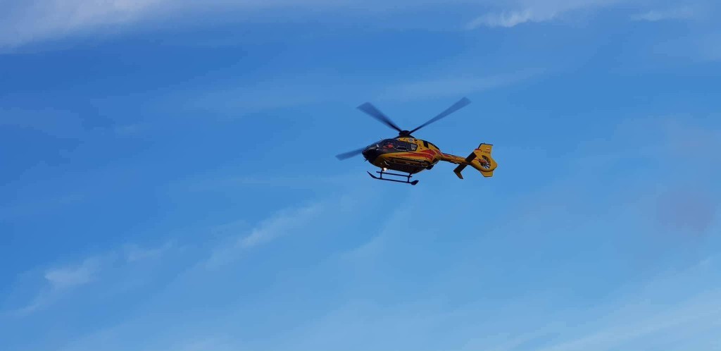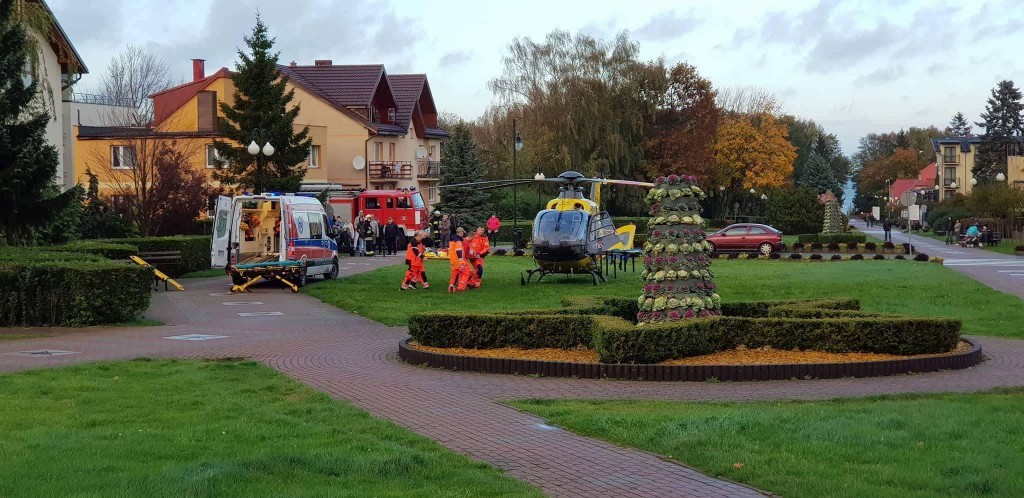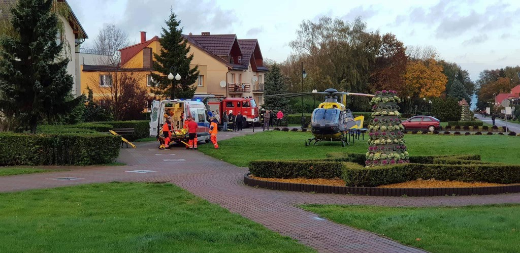 Po poszkodowanego przyleciał śmigłowiec pogotowia lotniczego z Gdańska, by przetransportować go do szpitala.