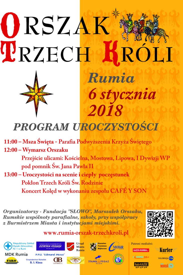– Obchody rozpoczniemy o godz. 11:00 uroczystą Mszą Świętą w kościele Podwyższenia Krzyża Świętego. Po Mszy, o godzinie 12:00 w uroczystym Orszaku przejdziemy ulicami Kościelną, Mostową, Lipową, I Dywizji WP pod pomnik Św. Jana Pawła II. O 13:00 odbędzie się tam inscenizacja Pokłonu Trzech Króli, koncert kolęd w wykonaniu latynoamerykańskiego zespołu CAFE Y SON, a na gości będzie czekał ciepły poczęstunek – czytamy na stronie organizatora.