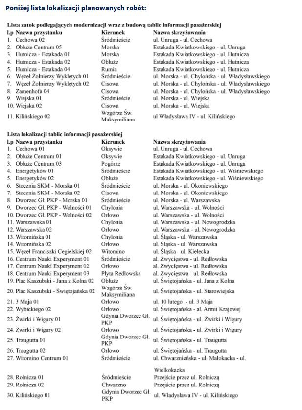 W Gdyni powstanie jedenaście nowych zatok przystankowych. Planowane jest także uruchomienie czterdziestu jeden tablic informacji pasażerskiej, zintegrowanych z Systemem Zarządzania i Sterowania Ruchem TRISTAR. Celem tych inwestycji jest zwiększenie konkurencyjności transportu publicznego wobec transportu indywidualnego