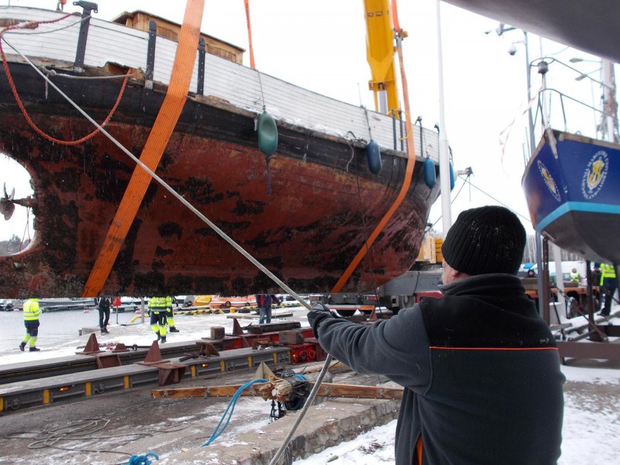 W sobotę (24 lutego) za pomocą specjalnego dźwigu udało się podnieść zabytkowy jacht „Knudel”, który ponad miesiąc temu zatonął w gdyńskiej marinie. Teraz jednostkę czeka remont, który ma jej przywrócić dawną świetność.