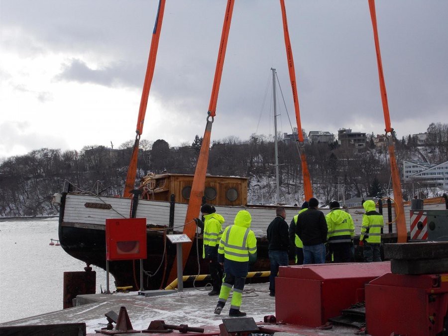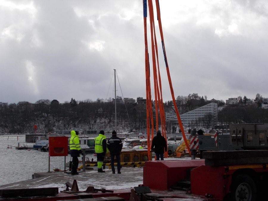 Po kilkunastu próbach jacht udało się podnieść z dna basenu portowego, dzięki specjalnym poduszkom o dużej wyporności. Od 14 lutego jednostka czekała na transport, a jej właściciele załatwiali wszelkie formalności. Wreszcie w sobotę (24 lutego) w marinie stanął specjalny dźwig, który podniósł jacht i przetransportował go nas specjalną lawetę. „Kundel” będzie remontowany w Rumi.