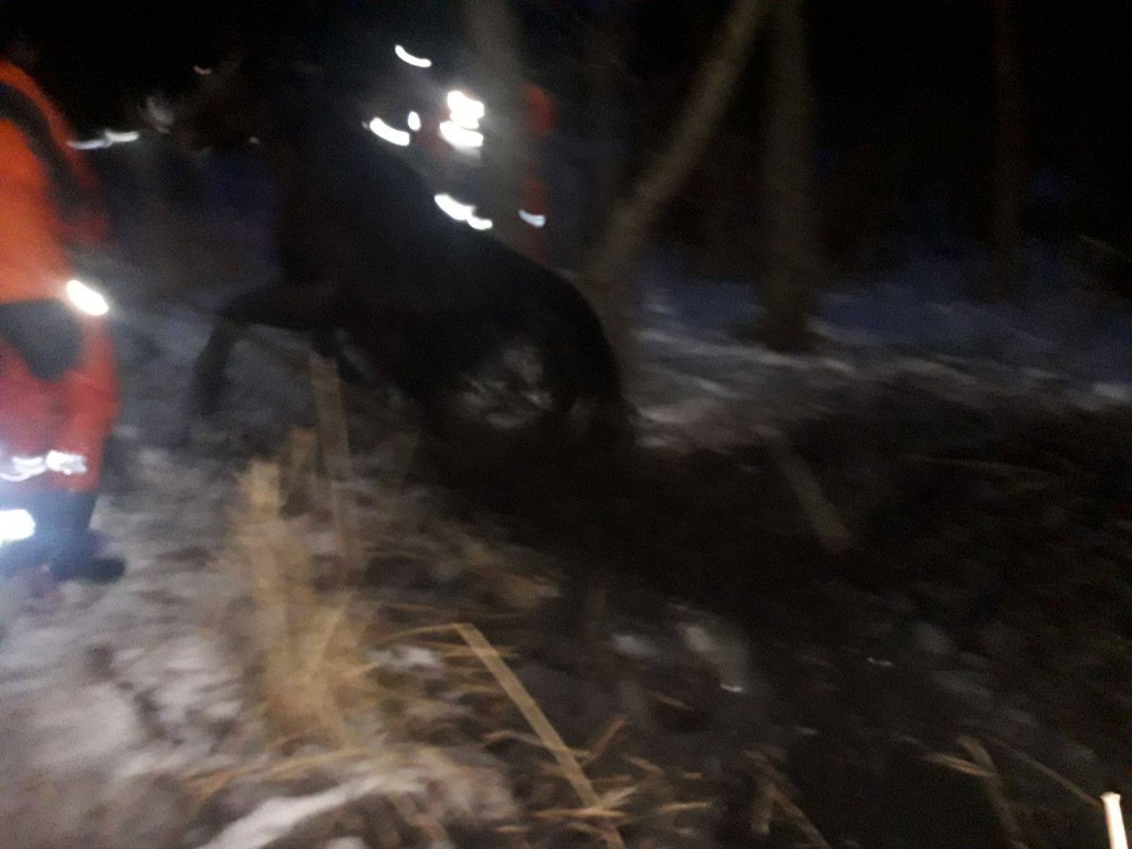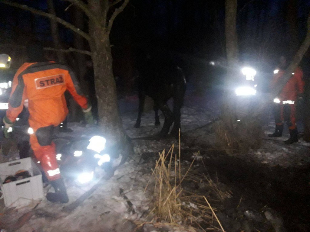 Pod koniem załamał się lód, zwierzę wylądowało w grząskim bagnie.