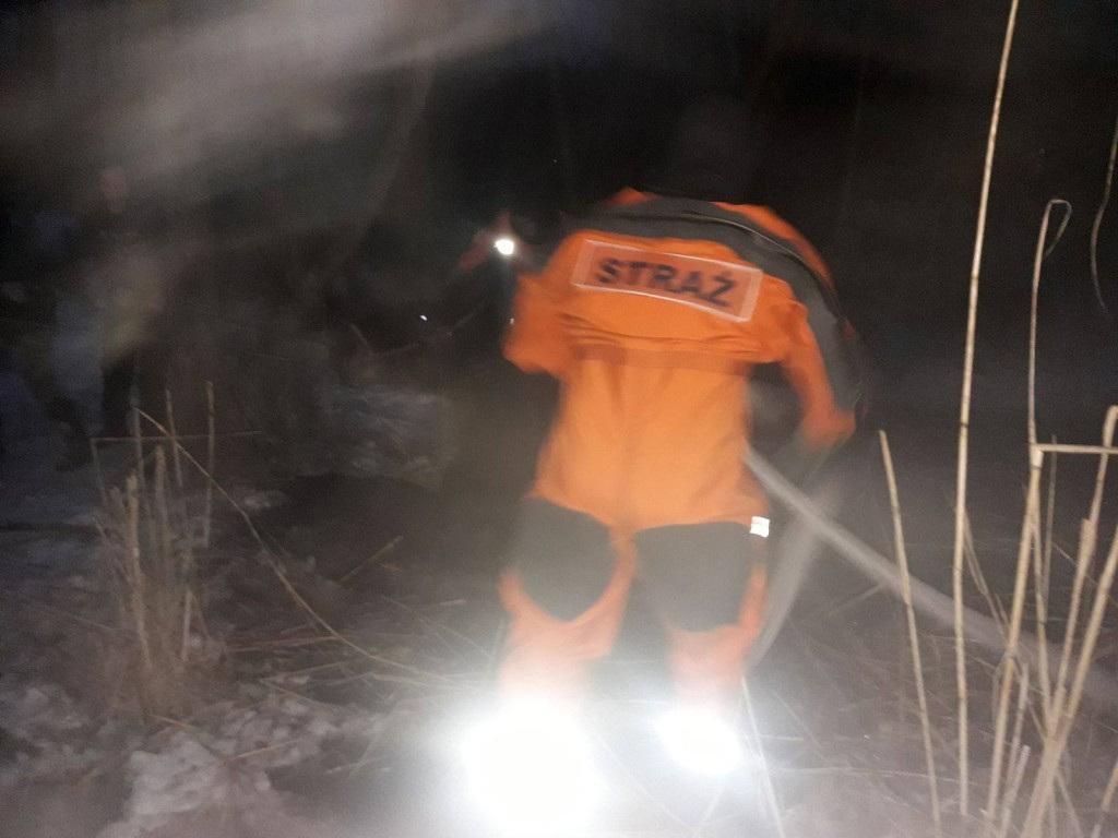 Strażacy zabezpieczyli miejsce zdarzenia, wprowadzili dwóch ratowników ubranych w specjalne ubrania do pracy w wodzie.