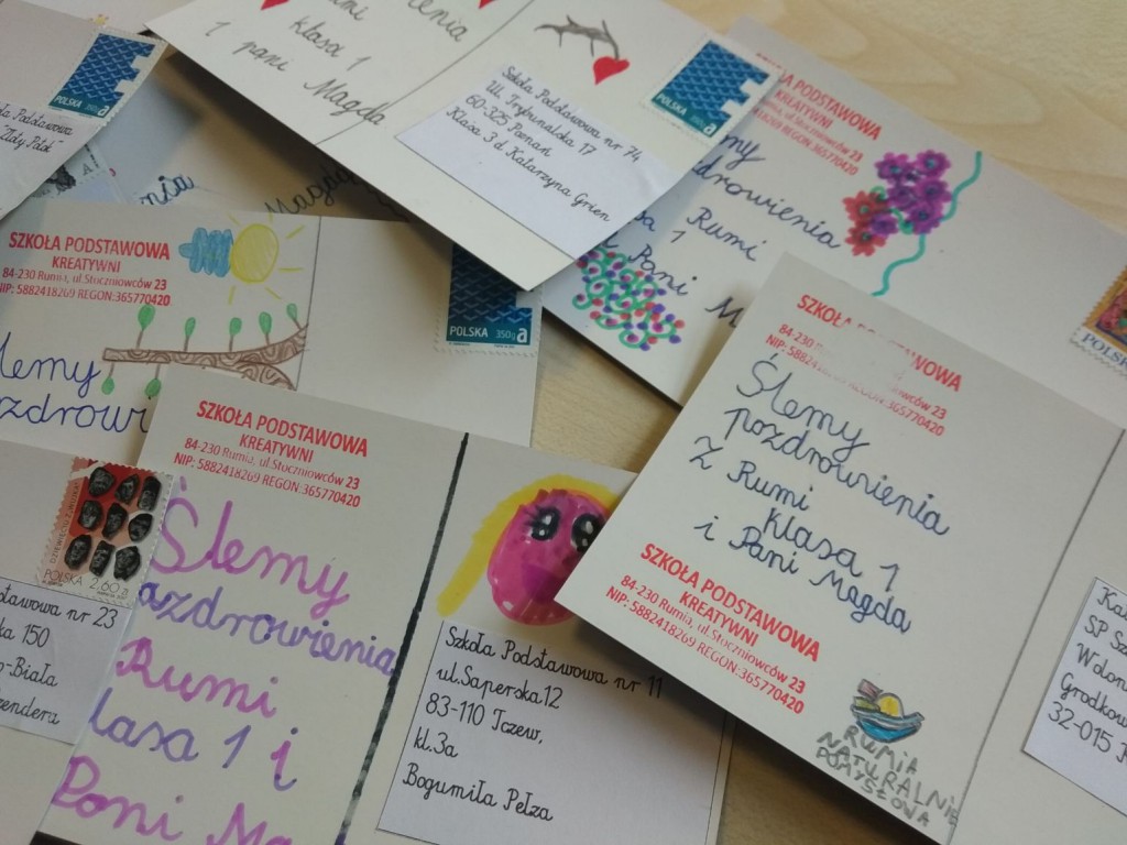 Kiedyś zdobiły lustra, lodówki i ściany większości domów. Z czasem zaczęły znikać, gdy poczta elektroniczna zaczęła zyskiwać coraz większą popularność. Tymczasem uczniowie Szkoły Podstawowej „Kreatywni” w Rumi na nowo poznają uroki wysyłania pocztówek.