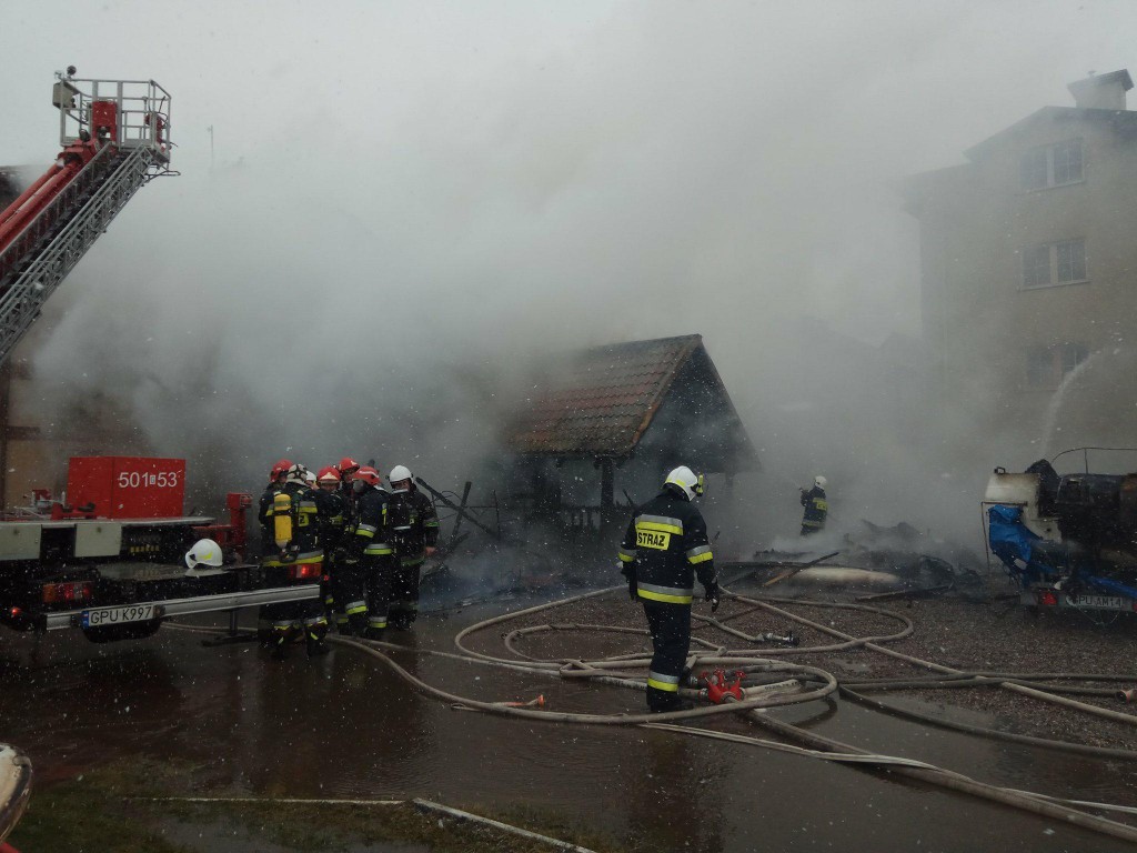 Na miejscu pracuje sześć zastępów straży pożarnej, trwa gaszenie pożaru.