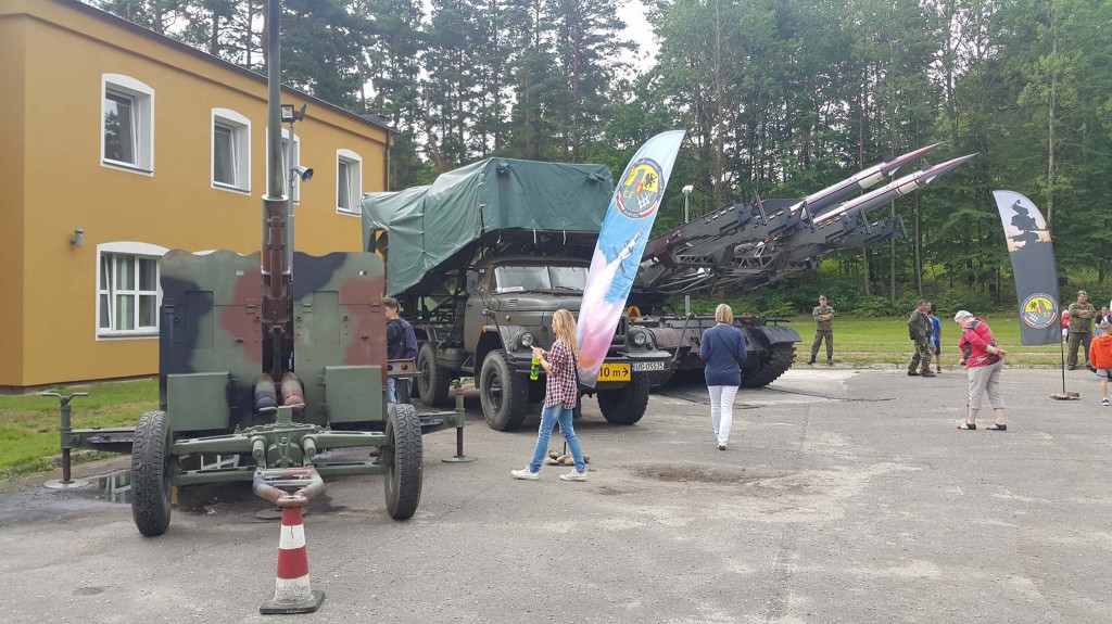 – "Gryf" to jedno z największych muzeów o tematyce militarnej w północnej Polsce – wyjaśnia przedstawicielka LOT. – Znajduje się na terenie byłej jednostki wojskowej 25. Dywizjonu Rakietowego w Dąbrówce. W swoich zbiorach ma ponad 70 pojazdów, dział, rakiet.