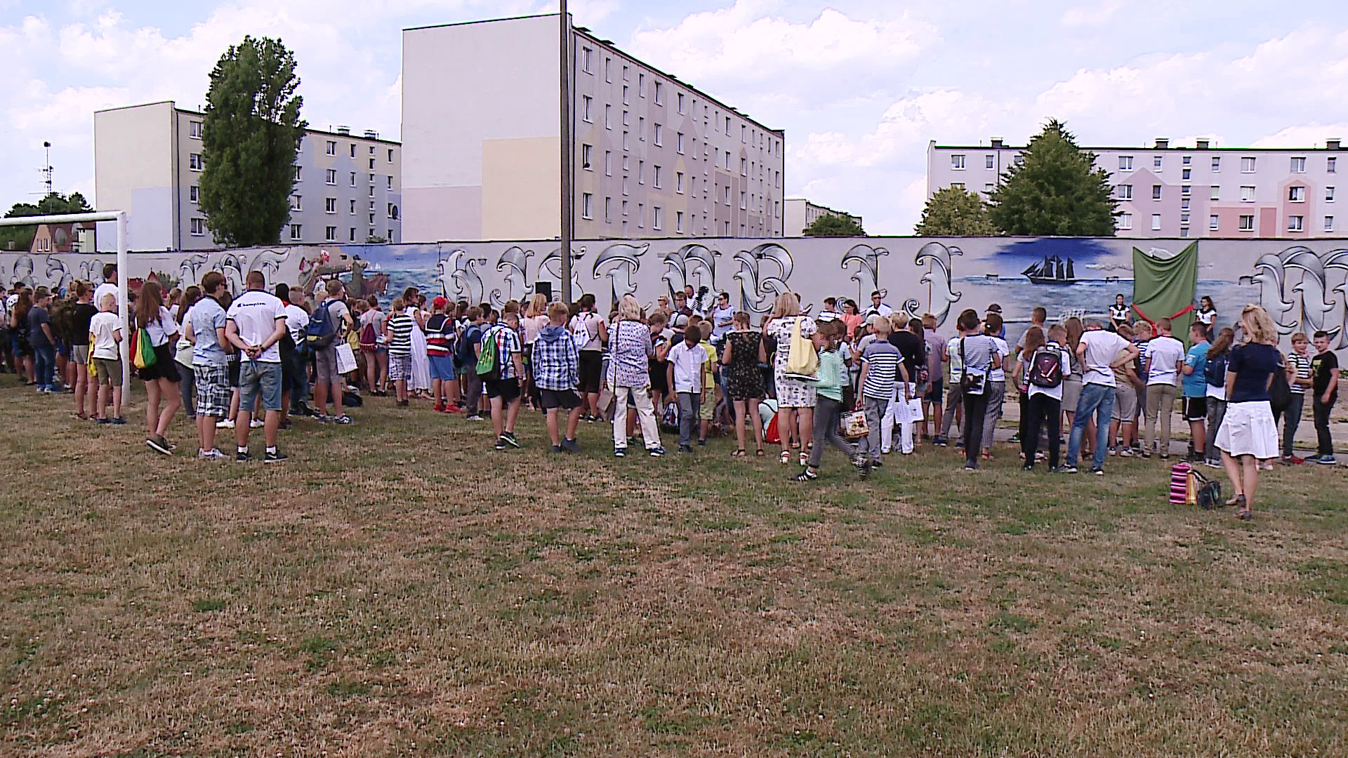 Mural na 670. urodziny Pucka już ukończony. W Szkole Podstawowej im. Mariusza Zaruskiego oficjalnie odsłonięto malowidło przedstawiające historię miasta w pigułce.