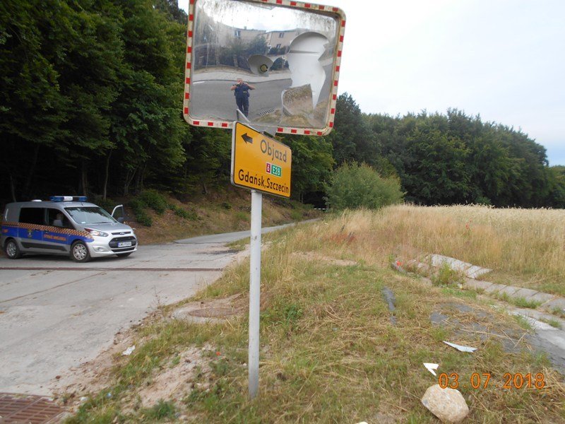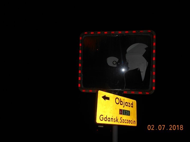 Około godziny 22:30 dyżurny Straży Miejskiej otrzymał zgłoszenie o uszkodzeniu ulicznego lustra, ustawionego na drodze gminnej przy skrzyżowaniu ulic Roszczynialskiego i Myśliwskiej w Wejherowie. Świadek widział, jak z jeden z mężczyzn z czteroosobowej grupy (składającej się z dwóch kobiet i dwóch mężczyzn) zbił lustro, po czym oddalili się w kierunku ulicy Śmiechowskiej.