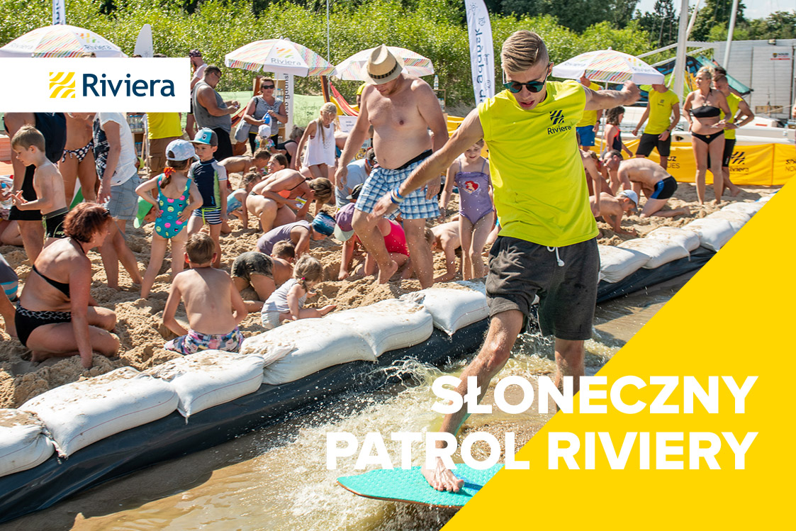 Strefa Słonecznego Patrolu Riviery to także miejsce, gdzie można skorzystać z przebieralni, schłodzić się pod wodną mgiełką, czy skorzystać z kosmetyków chroniących przed słońcem. Na wszystkich spragnionych będą czekać również butelki zimnej wody. Po zabawie oldschoolowy Rivierobus, pełen atrakcji i upominków zabierze Was prosto z plaży za zakupy do Centrum Riviera.