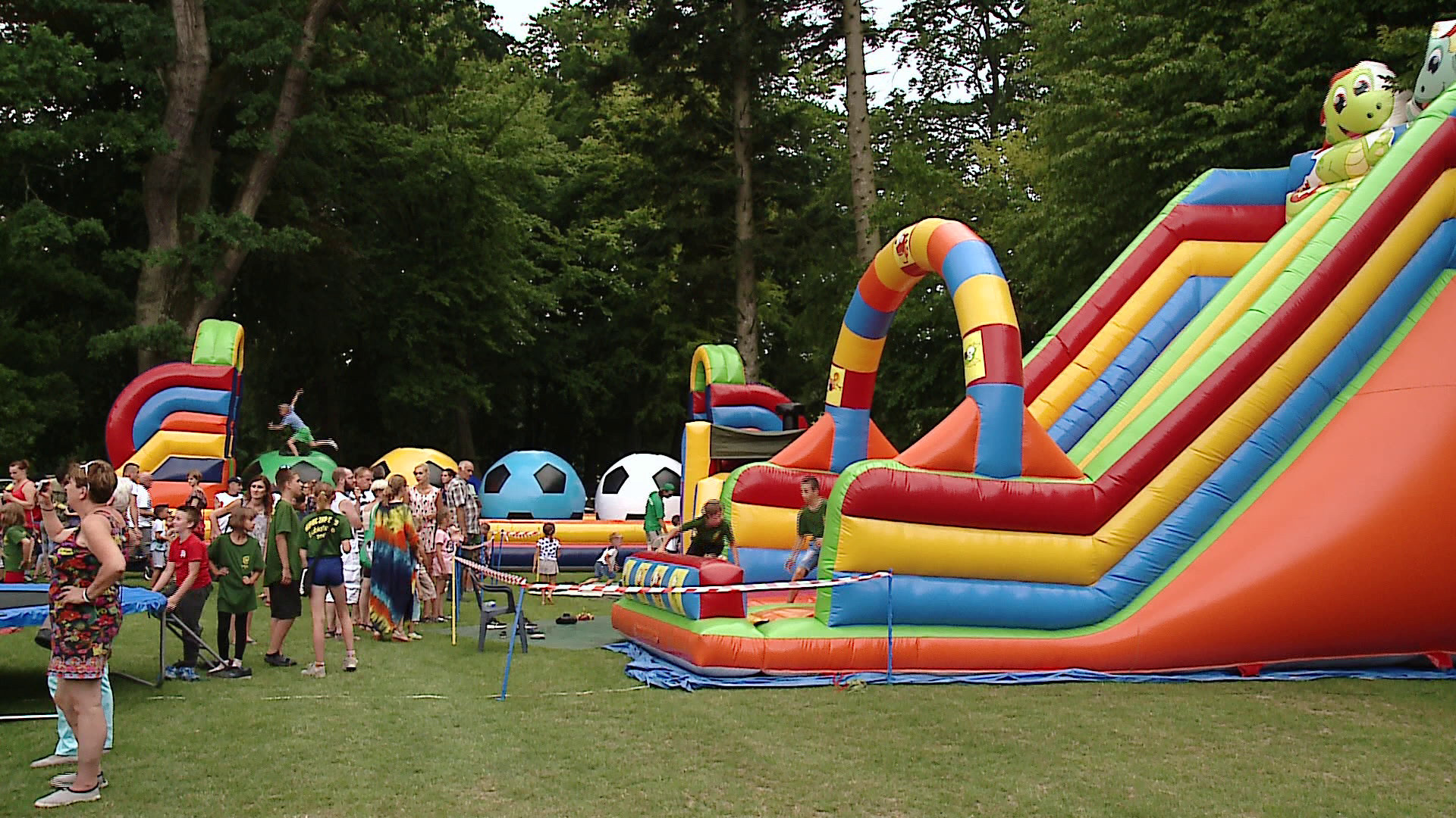 Najmłodsi uczestnicy korzystali z dmuchanych zamków, trampolin oraz oglądali pokaz iluzjonisty.