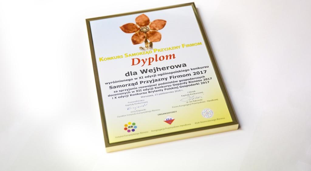 W przypadku Wejherowa, Instytut Europejskiego Biznesu wskazał 40 dynamicznych firm, które zyskały tytuł Gepardów Biznesu 2017. Było też osiem firm z tytułami Brylantów Polskiej Gospodarki. To oznacza nieprzeciętną pozycję miasta na tle innych ośrodków, która znalazła uznanie kapituły.