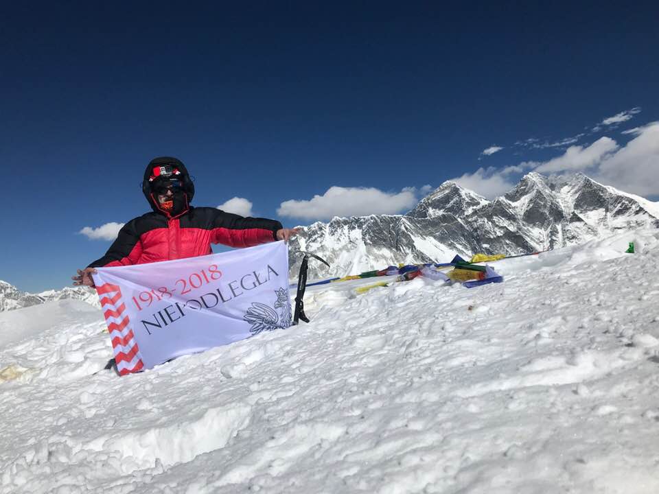 – 11.11.2018 o godzinie 11:00 czasu nepalskiego, w hołdzie naszym wszystkim pokoleniom walczącym o odzyskanie niepodległości, udało się wejść na jeden z himalajskich kolosów i obwieścić wszystkim o naszej narodowej radości. W tle Everest i Lhotse – pisze na swoim Facebooku Karol Strelau.