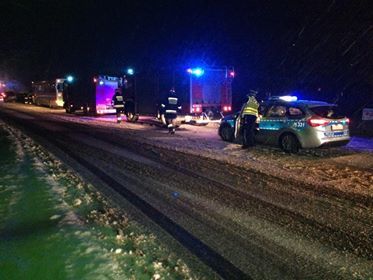 Na drogach panują niesprzyjające warunki atmosferyczne, pada śnieg, jest ślisko. Wiele miejsc pokryte jest już białym puchem. Radzimy zachować szczególną ostrożność.