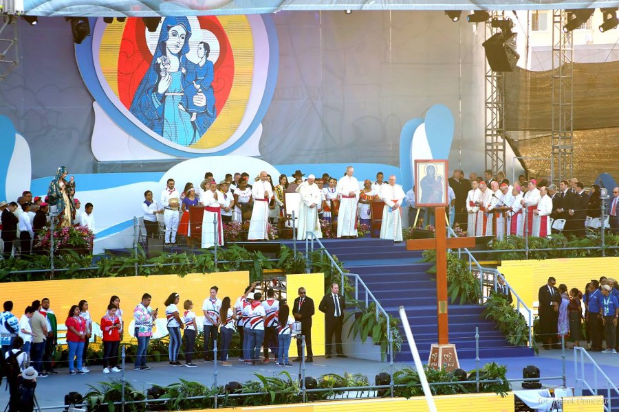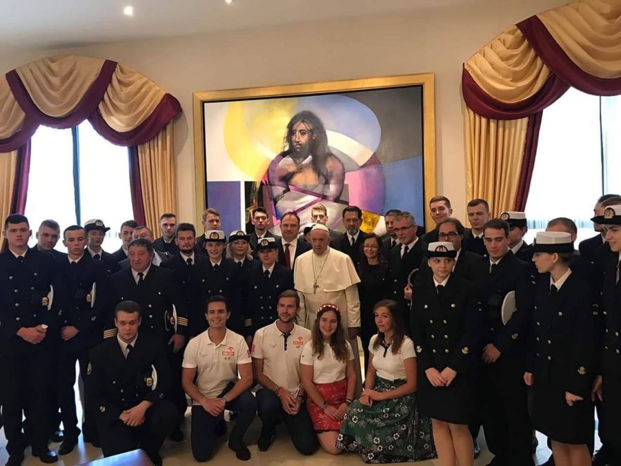 – Uczestnicy Rejsu Niepodległości znaleźli się wśród tysięcy pielgrzymów z ponad 150 krajów świata, którzy brali udział w 34. Światowych Dniach Młodzieży w Panamie. Towarzyszyła im delegacja Uniwersytetu Morskiego w Gdyni. Wspólnie uczestniczyli we mszy świętej pod przewodnictwem papieża Franciszka. Mieli też okazję zamienić z nim kilka słów podczas prywatnej audiencji. Pobyt w Panamie zakończył bankiet na pokładzie „Daru Młodzieży”. Pojawili się na nim: Pierwsza Dama RP – Agata Kornhauser-Duda oraz prezydent Panamy – Juan Carlos Varela. – informuje UM Gdynia.