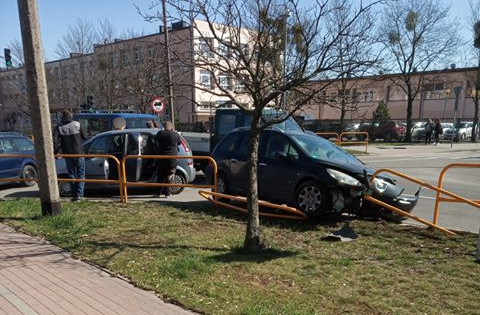 Do zdarzenia doszło we wtorek (2 kwietnia) około godziny 14. Na skrzyżowaniu ulic Weteranów i Prusa zderzyły się dwa samochody. Jedno z aut staranowało barierki ochronne. Na miejsce wezwano straż pożarną, karetkę pogotowia i policję, która wyjaśni przyczyny zdarzenia.