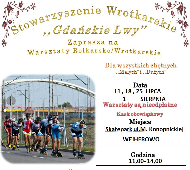 Każdy mieszkaniec Wejherowa może wziąć udział w warsztatach wrotkarskich. W trakcie bezpłatnych lekcji będzie możliwość nauki jady na rolkach i wrotkach oraz doskonalenia techniki jazdy.