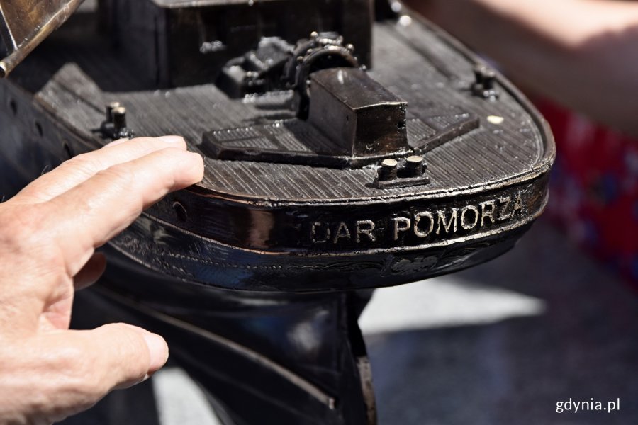 Miniatura fregaty Dar Pomorza powstała w ramach projektu „Zobaczyć Świat Rękoma”. Polega on na budowie makiet z brązu najbardziej znanych zabytków historycznych Trójmiasta i pozwala na zmniejszanie barier wynikających z niepełnosprawności, a także kultywowanie pamięci o wydarzeniach ważnych dla Gdyni i kraju.