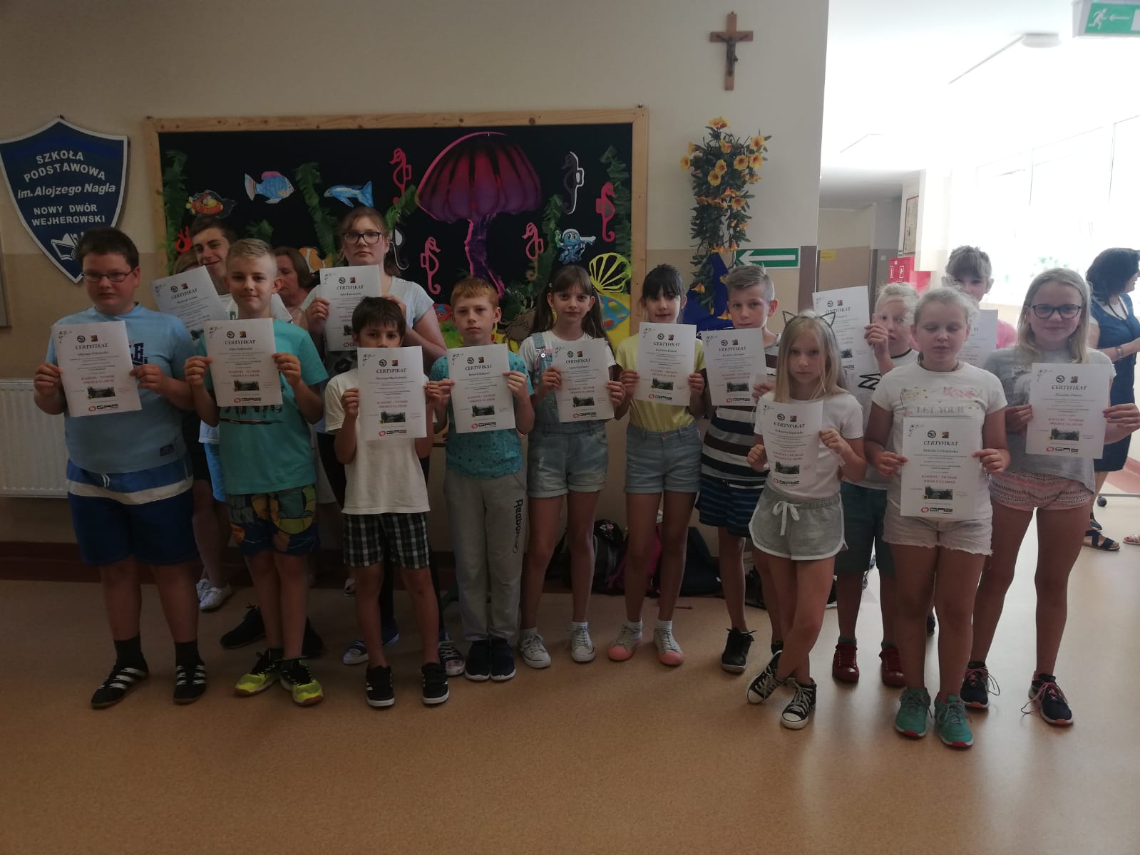 Na koniec roku szkolnego w szkole w Nowym Dworze Wejherowskim zorganizowano uroczysty apel, podczas którego podsumowano cały projekt edukacyjny i wręczono uczestnikom projektu pamiątkowe certyfikaty.
